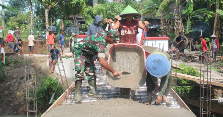KEBUMEN - Semangat kebersamaan membara di Desa Blengor Kulon, Kecamatan Ambal, Kabupaten Kebumen, tatkala pembangunan Jembatan Garuda Merah Putih memasuki fase paling menentukan: pengecoran. Progres pesat ini, yang terjadi pada Sabtu (18/4/2026), menjadi saksi bisu sinergi luar biasa antara warga setempat dan prajurit TNI dari Kodim Kebumen.